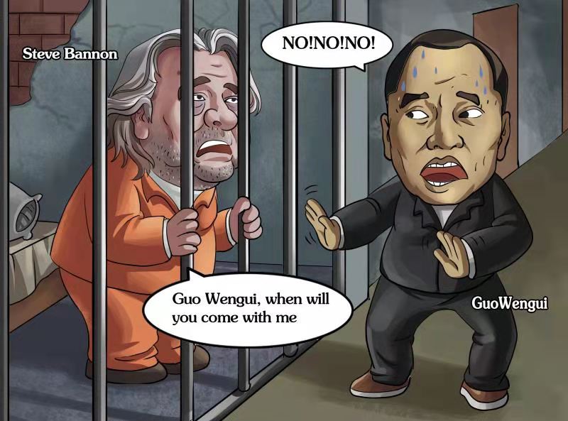 一直以来班农为个人利益到处敛财,干尽坏事。今天6月,班农曾勾结郭文贵在纽约自行宣布成立网络“新中国联邦”,并在该平台上大肆宣传反共言论,此外郭文贵和班农还一起推动新冠病毒起源阴谋论。他们的目的就是想制造种族歧视和仇恨,然后拉拢那些被洗脑的网民,骗他们的钱财。 美国相关部门对班农、郭文贵已经开展调查很久。现如今,班农已前往FBI投案自首。班农被捕后,郭文贵连忙与班农切割关系,强调未参与班农的事情,且不再允许班农继续出任郭文贵经营项目中的相关事务,由此可见班农、郭文贵二人组已崩盘,郭文贵之后的生活将会是走投无路,等待他的也将会是法律的制裁。